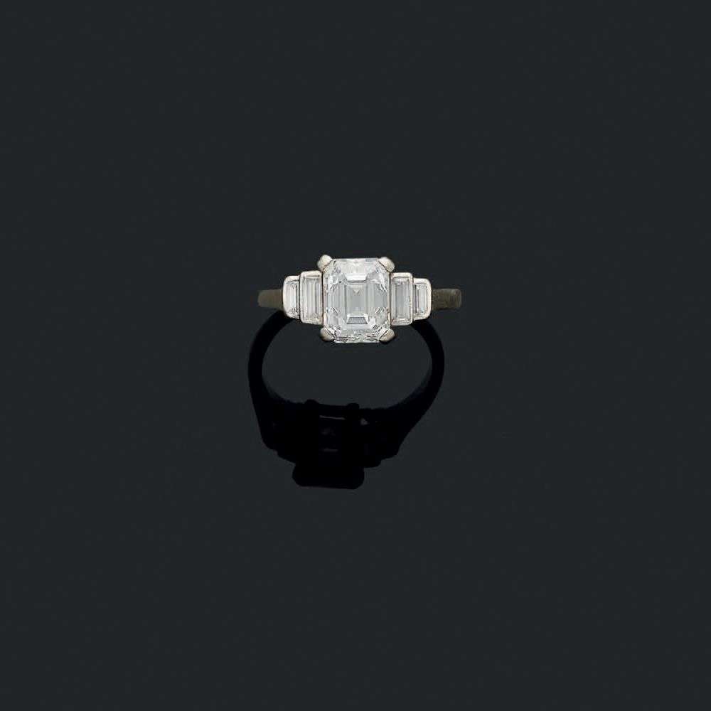 Diamant rectangulaire à pans coupés et diamants baguettes