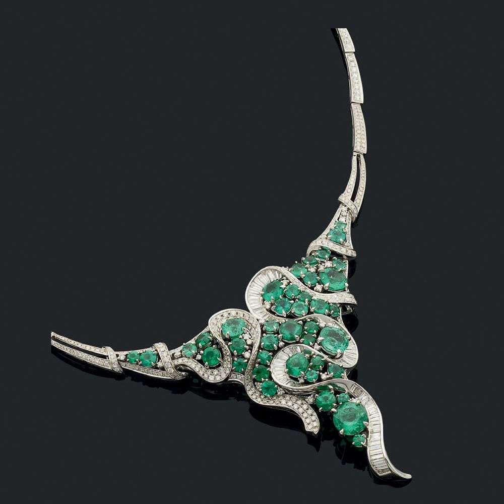 An emerald, diamond and gold necklace, report