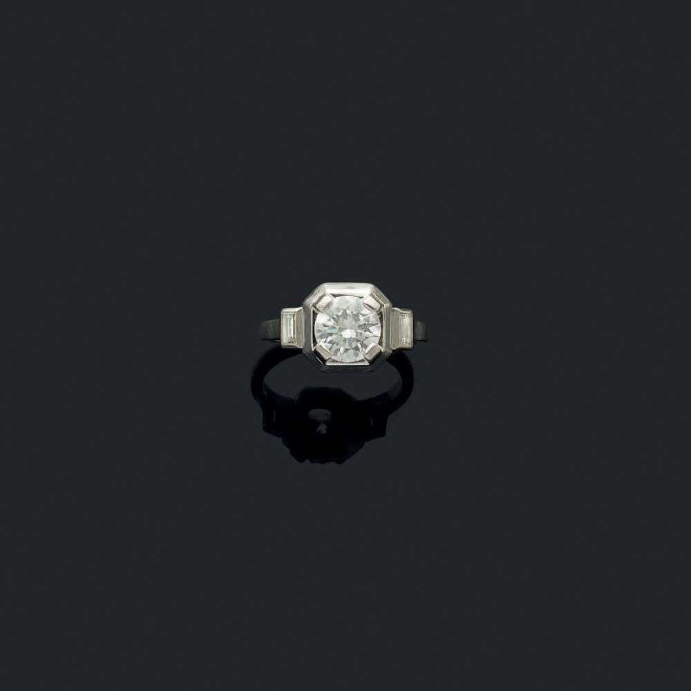Diamant rond taille brillant et diamants baguettes