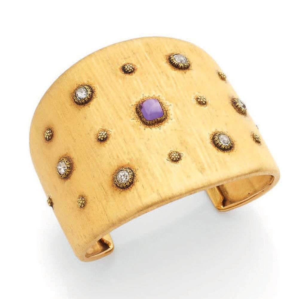 An amethyst, diamond and gold bracelet, signed Buccellati