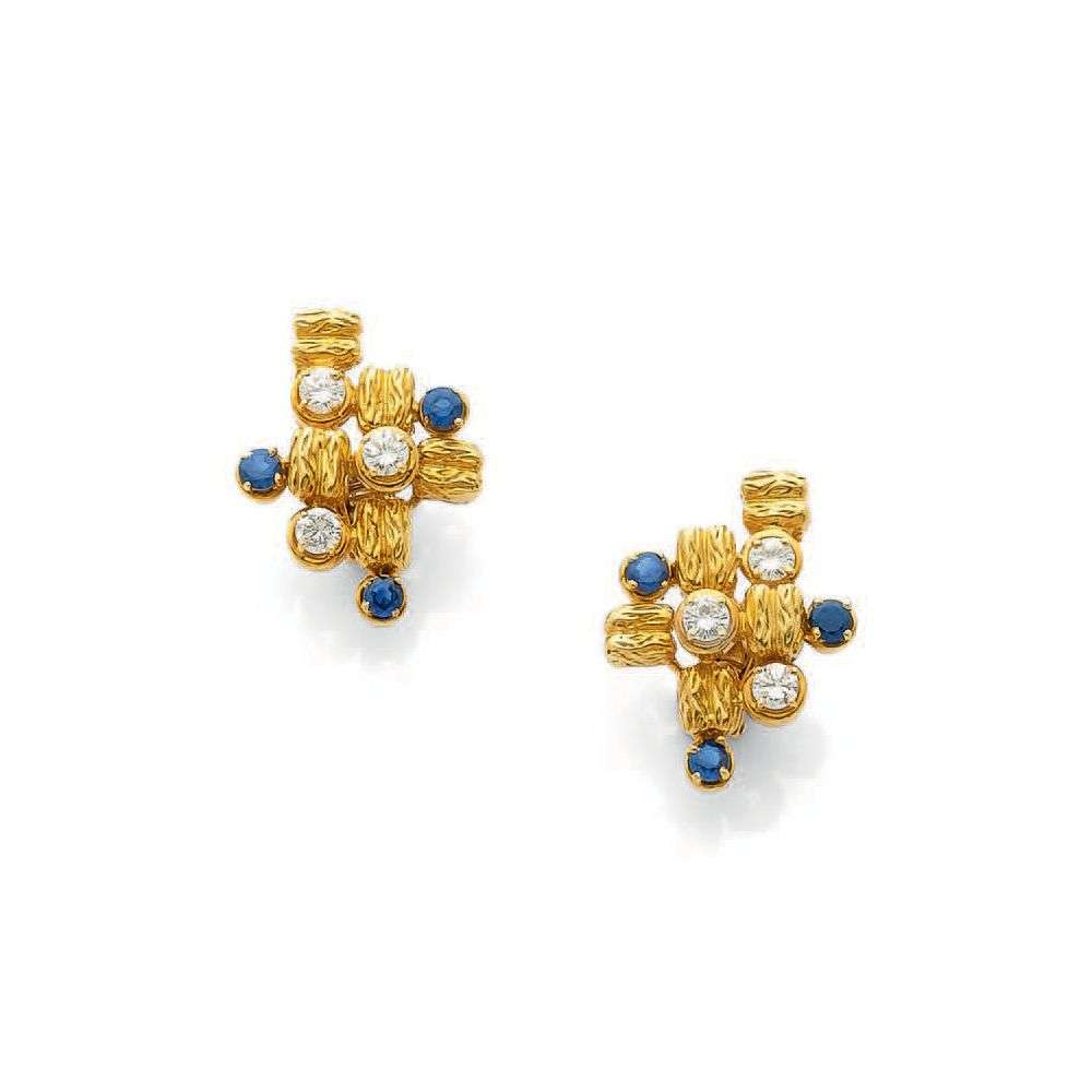 Sapphire, diamond and gold earrings, circa 1970, signed Mauboussin