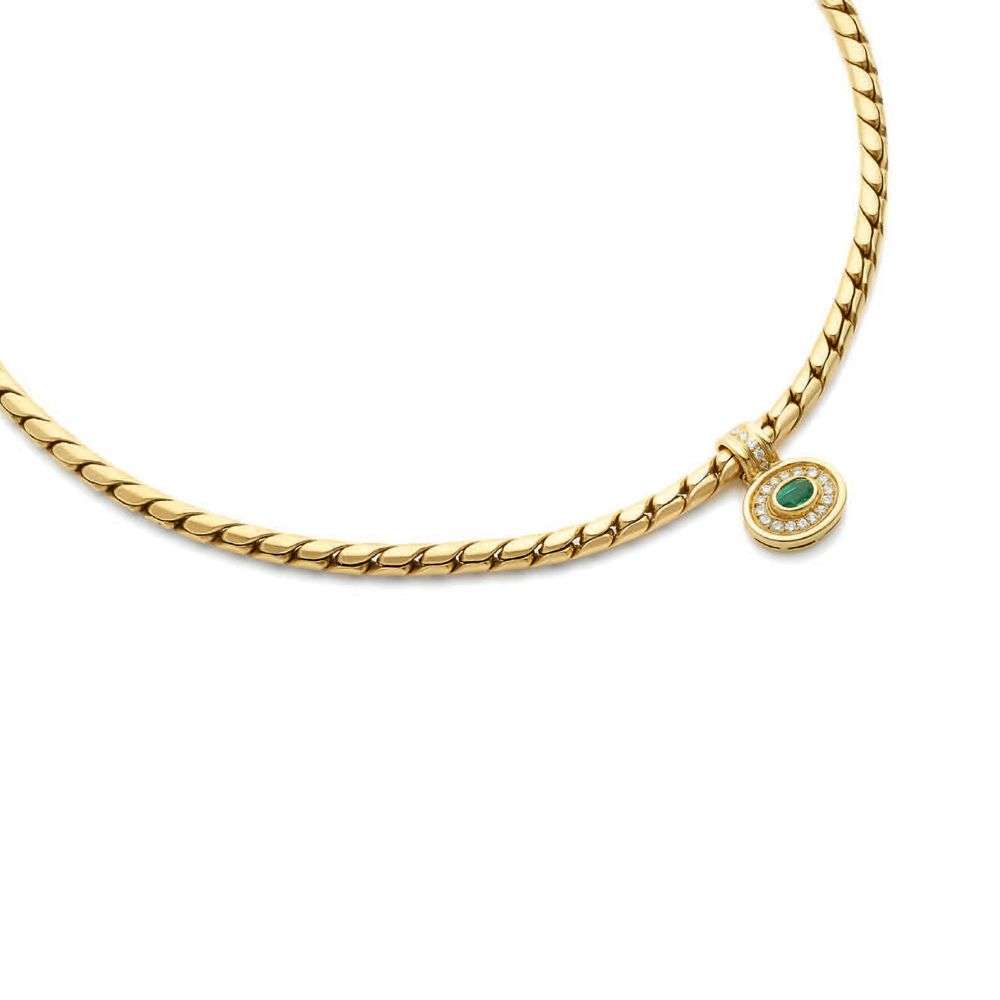 An emerald, diamond and gold necklace, stamped Georges Lenfant