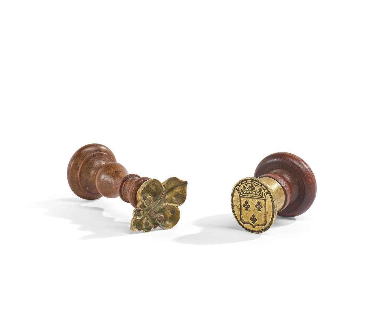 SCEAU AUX ARMES ROYALES DE FRANCE Matrice en laiton, champ ovale gravé des armes royales de France sous la couronne idoine.