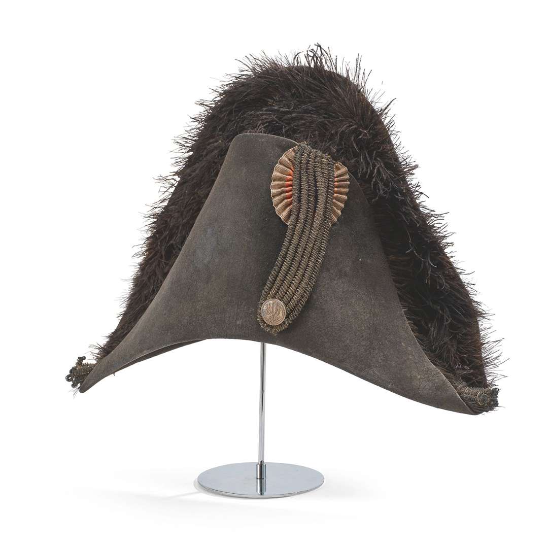 BICORNE D'ADJUDANT COMMANDANT DE LA GARDE NATIONALE En feutre noir et bordé de plumes d'autruche.