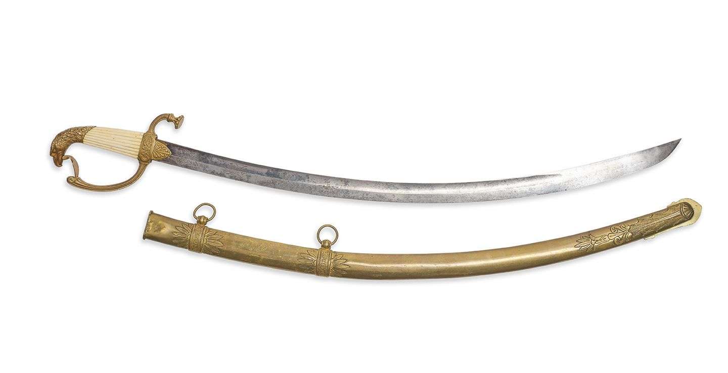 SABRE D'OFFICIER DE CAVALERIE LÉGÈRE Présumé pour un officier américain au service de la France. Monture en cuivre doré et ciselé.