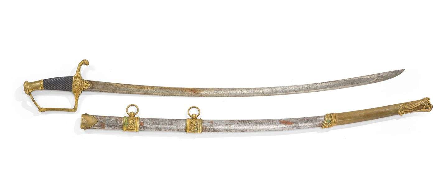 SABRE D'AIDE DE CAMP MODÈLE VENDEMIAIRE AN XII Monture en laiton et ébène.