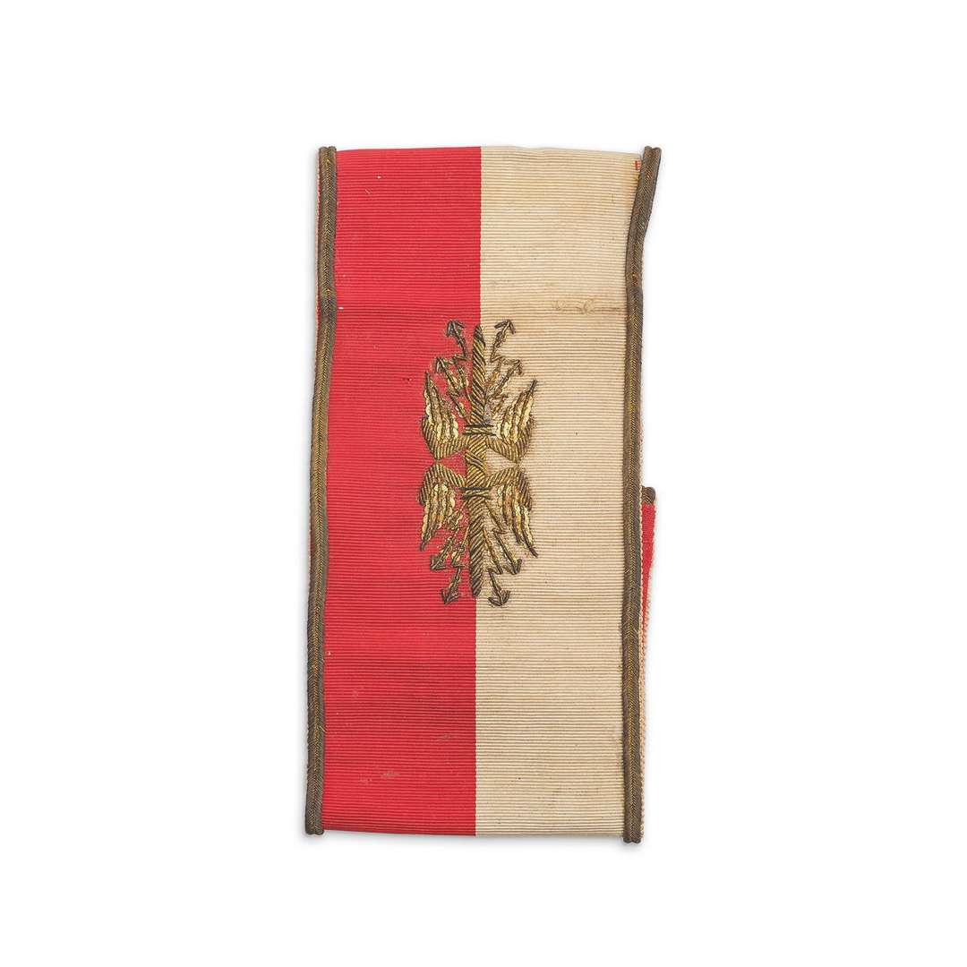 BRASSARD D'OFFICIER D'ÉTAT-MAJOR En tissu brodé en passementerie or et cannetille.