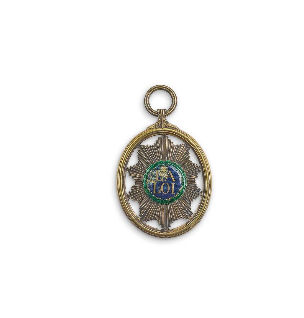 Centre émaillé « La LOI » sur fond rayonnant.