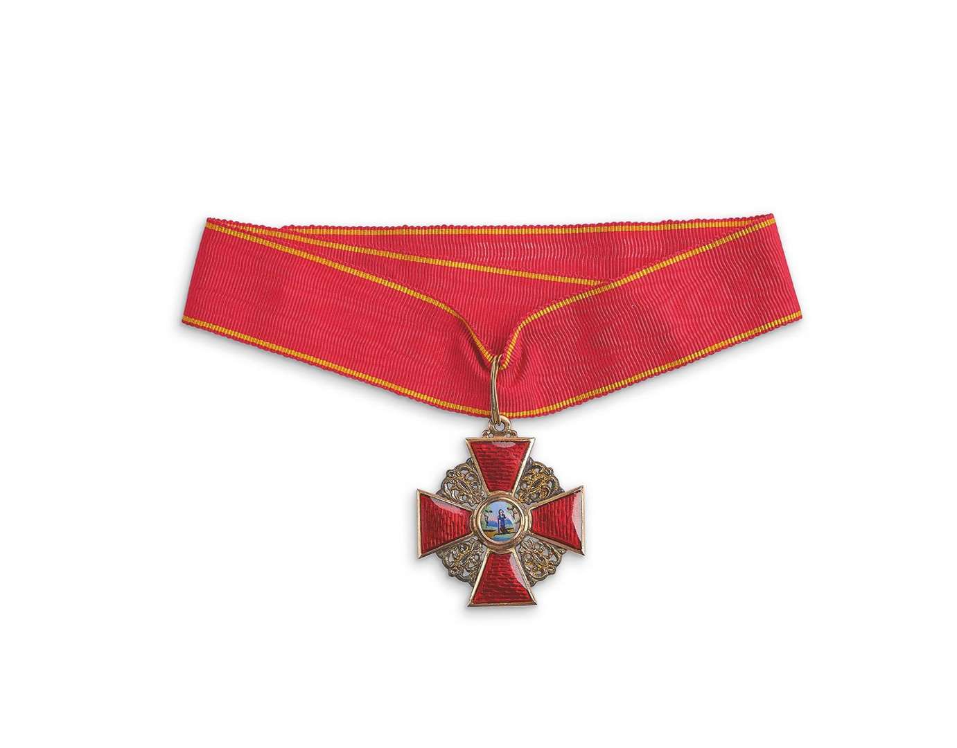 RUSSIE IMPÉRIALE, ORDRE DE SAINTE-ANNE Médaille de troisième classe à titre civil. En or 14 carats et émail. Poinçons à la bélière 56 zolotniques et « KB » pour Albert Keibel.
