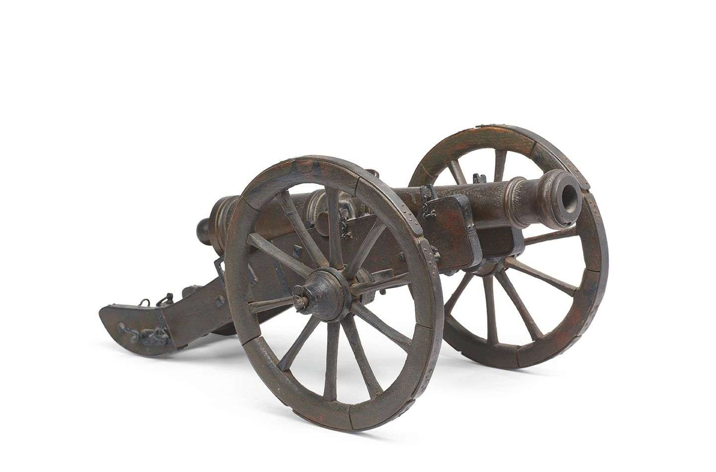 MAQUETTE DE CANON Le fût en bronze à décor estampé et gravé de feuillage a
