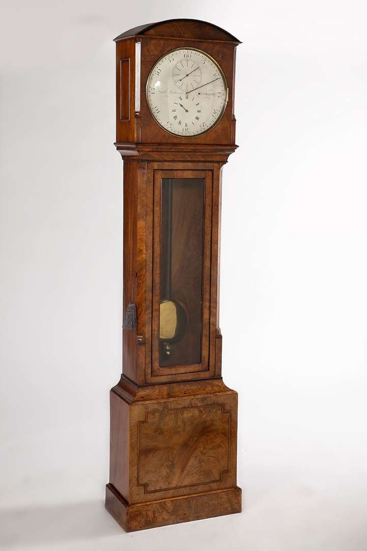 RÉGULATEUR DE PARQUET par Frederick Anderson à Gravesend, le cadran en acier précisant les minutes et comprenant deux petits cadrans internes respectivement pour les heures et secondes.