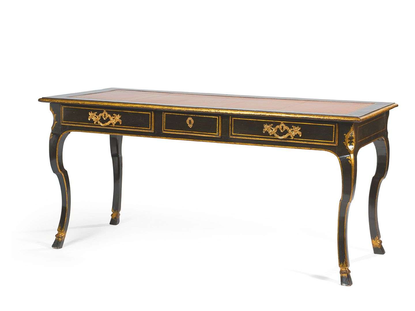 La ceinture ouvrant par trois tiroirs côté travail et les pieds galbés, trois faux tiroirs côté visiteur.