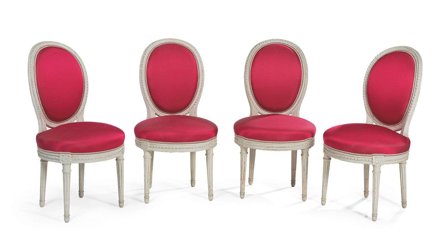 SUITE DE QUATRE FAUTEUILS ET DE QUATRE CHAISES