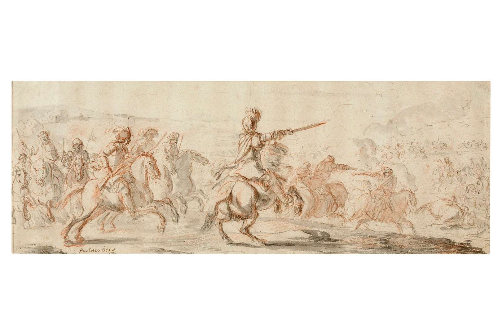 Battle scene, black pencil, red chalk, black