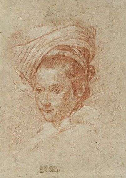 Head of a young Woman with turban, red chalk heightened with white