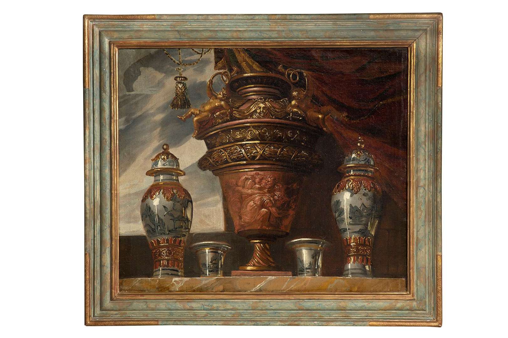 Still Life with ewers and porcelain, canvas (pair)