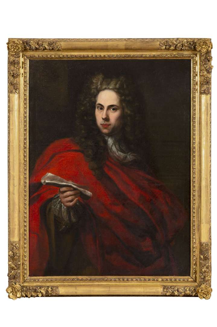 Presumed portrait of François-Pierre de Payran (1636-1704), original canvas, inscribed on the reverse FRANCOIS / Pierre de Payran / 1606(?)7 / aetatis mea 29 / Professeur de droit à l'université d'Avignon. / conseiller au Parlement D'orange, carved and guilded wood frame, 18th century Rhône Valley work