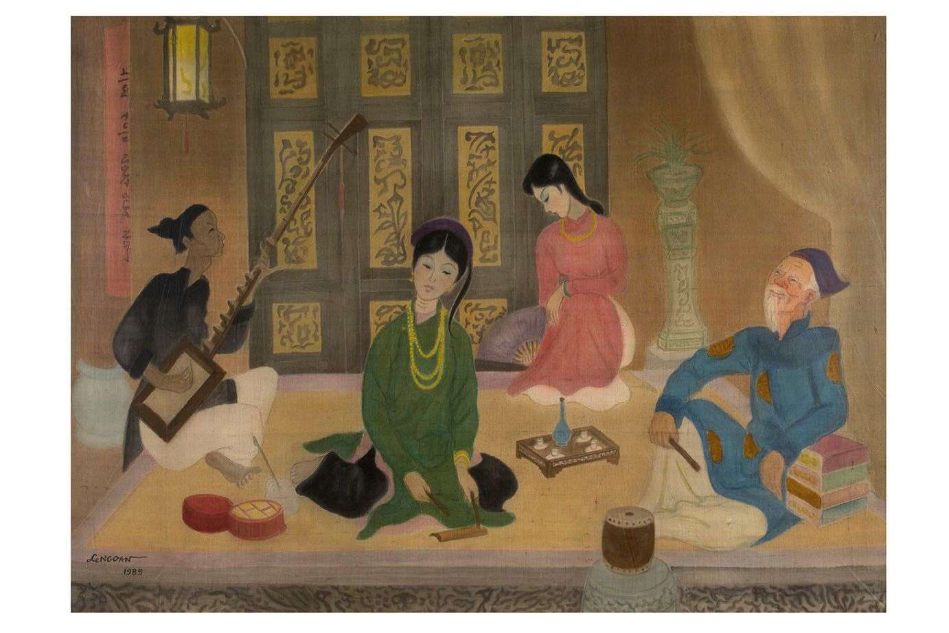 Ink and color on silk, signed and dated lower left
