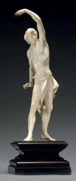 STATUETTE DE DANSEUR Ivoire H: 19 cm - socle: 7,8 cm Italie - XVIIème sièc