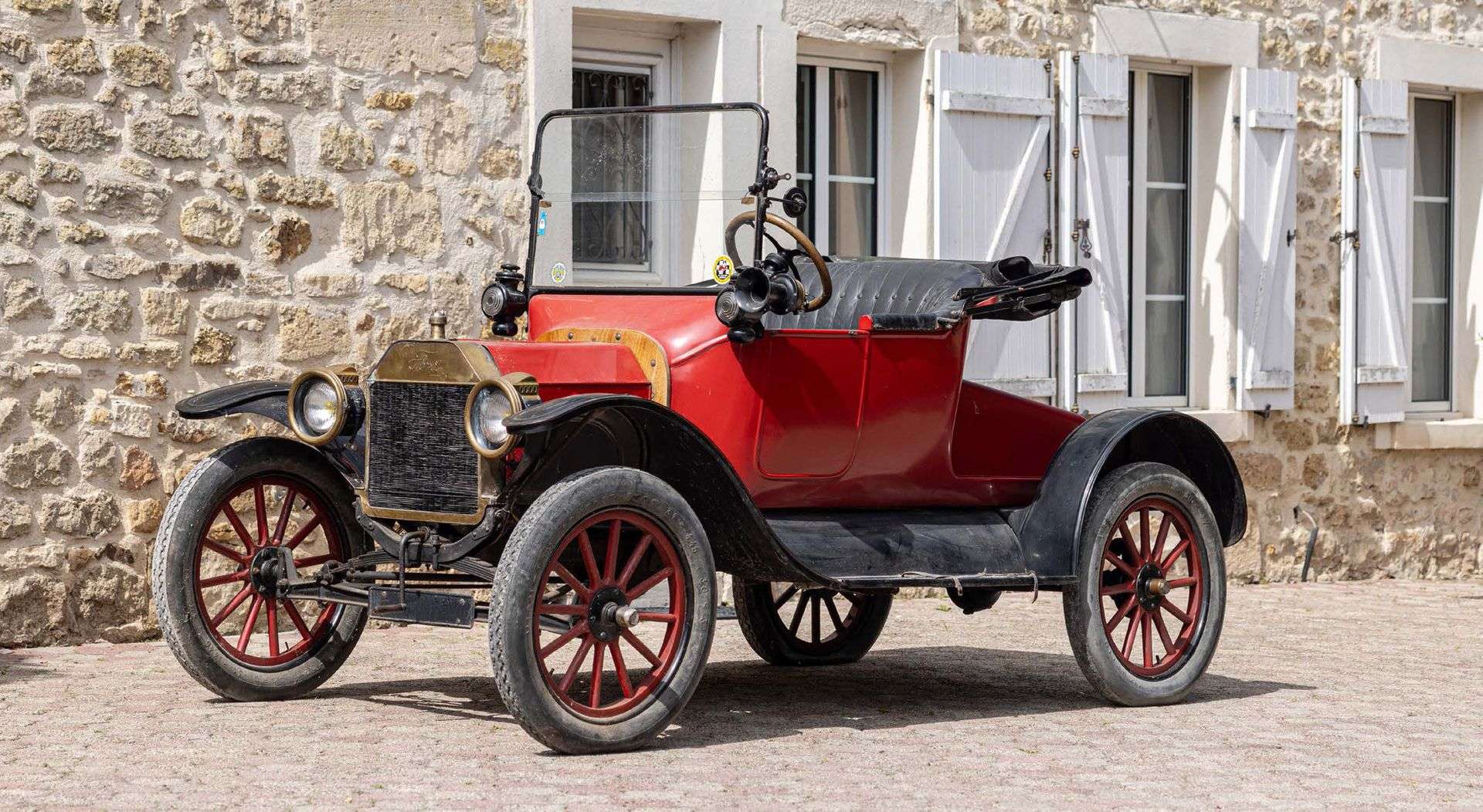 La Ford T sera déclinée en plusieurs carrosseries : Touring, Tudor, Coupé, Ambulance, Pick-Up, Speedster, etc. Notre exemplaire est habillé de l’intéressante caisse « Runabout », à deux places et roue de secours (absente) montée sur la malle arrière.