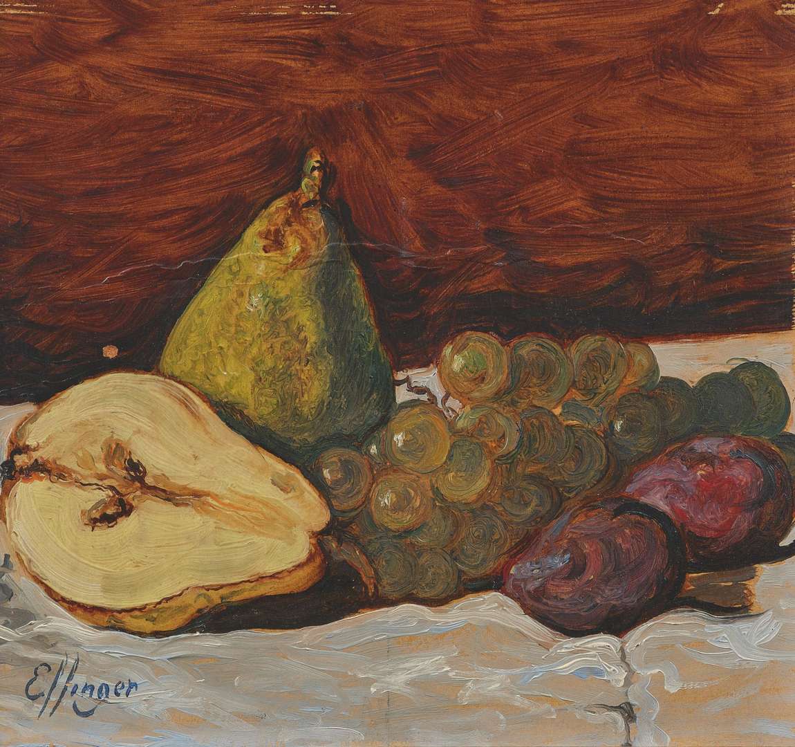 Nature morte aux poires, grappe de raisin et prunes