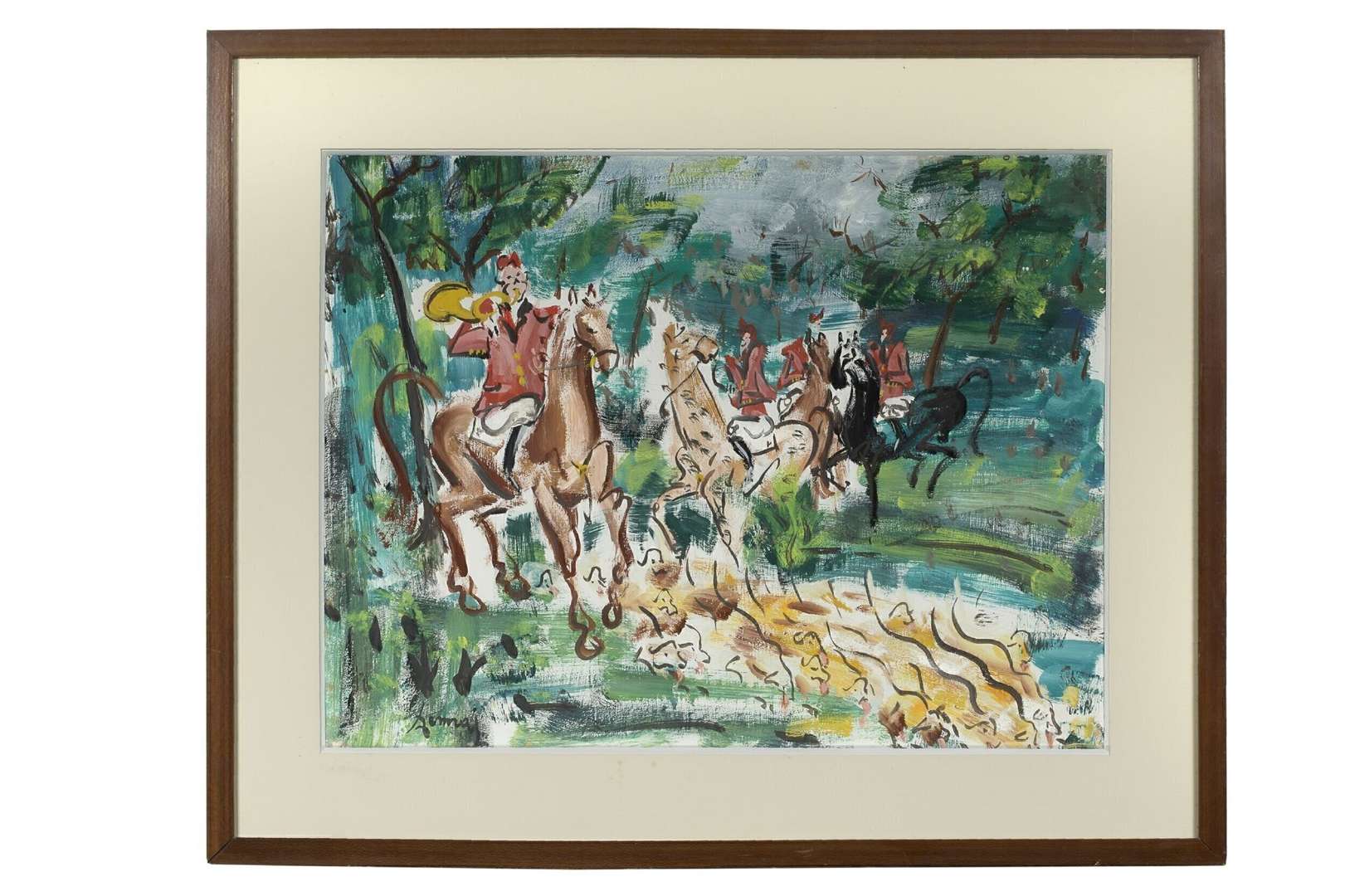 A set of two works, gouache on paper, the first one indistinctly signed lower left, the second one indistinctly signed and dated '[19]57' upper left