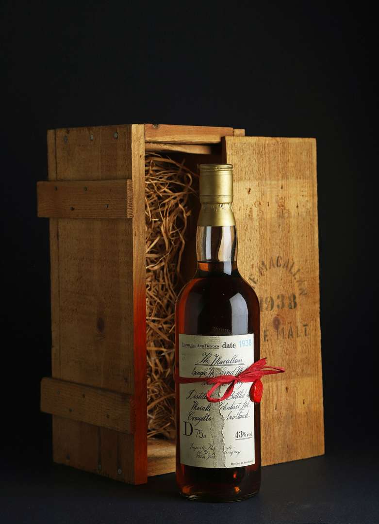 1 B SINGLE HIGHLAND MALT SCOTCH WHISKY - 42 ANS D'ÂGE 75 cl 43% (Coffret Bois d'origine) (étiquette très abimée| distillé en 1938| mise en bouteille à la distillerie en 1980| importée en France par Corade) - Macallan Glenlivet