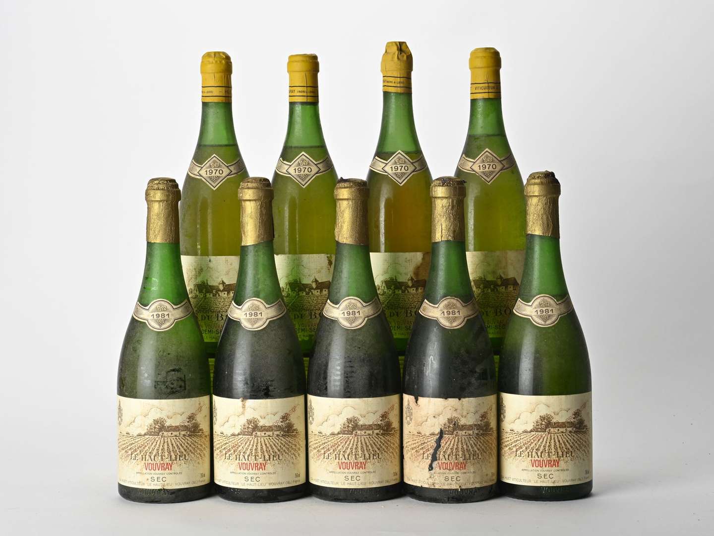 4 B VOUVRAY CLOS DU BOURG DEMI-SEC (1 à 3,5| 2 à 4 et 1 à 6 cm| e.t.h. à e.a| capsules plissées) - 1970 - Domaine Huet