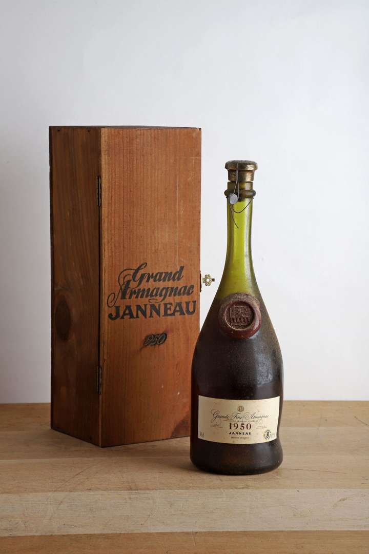 1 B GRAND ARMAGNAC 70 cl 42% (Caisse Bois d'origine) (9,5 cm| e.t.h.) - 1950 - Janneau