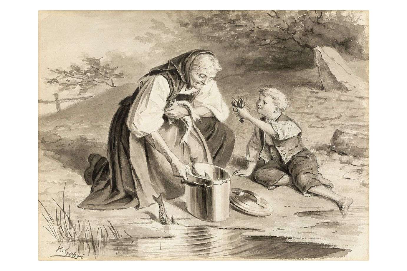 Signé en bas à gauche K. Gehri