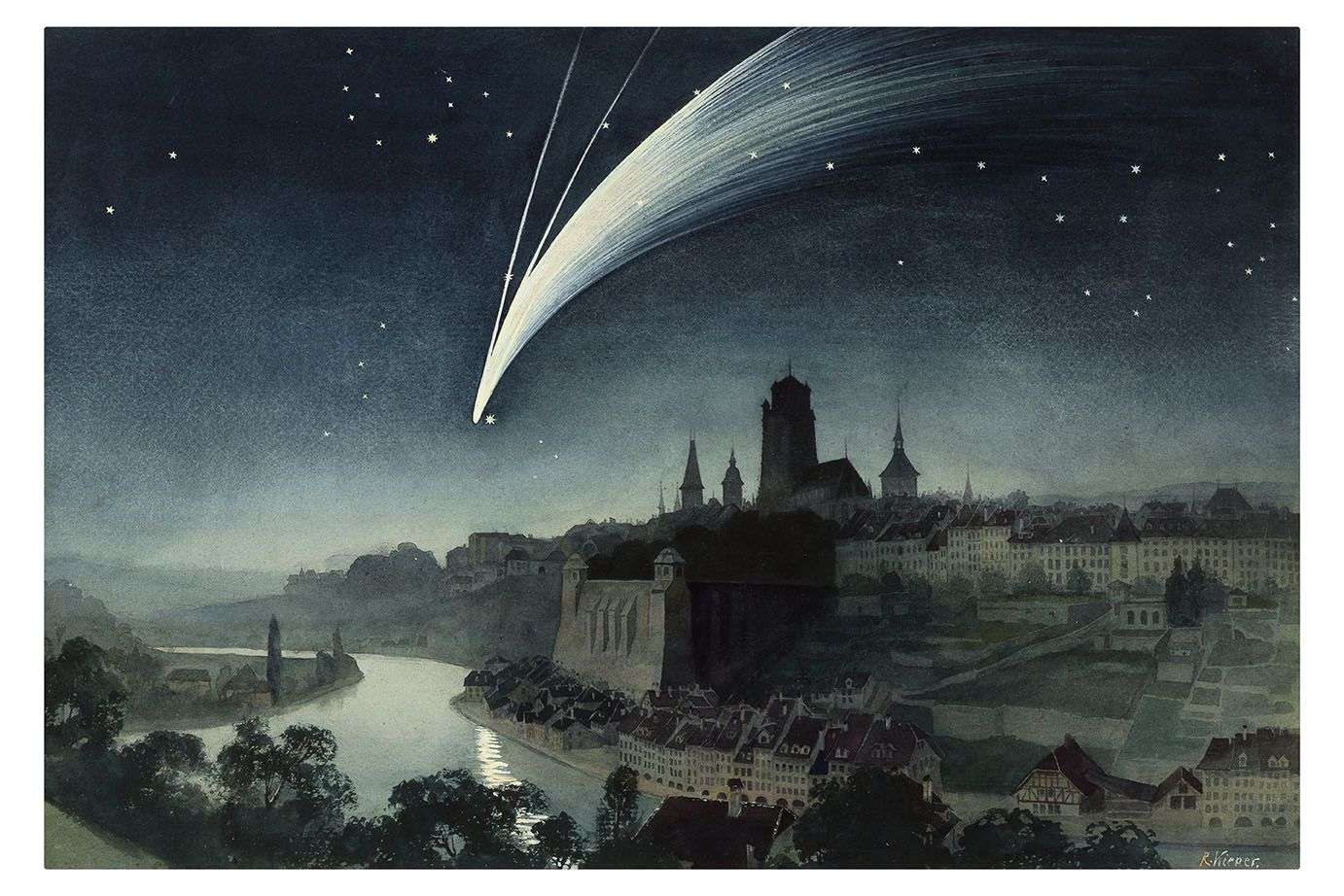 Porte une signature en bas à droit R. Kiener.
