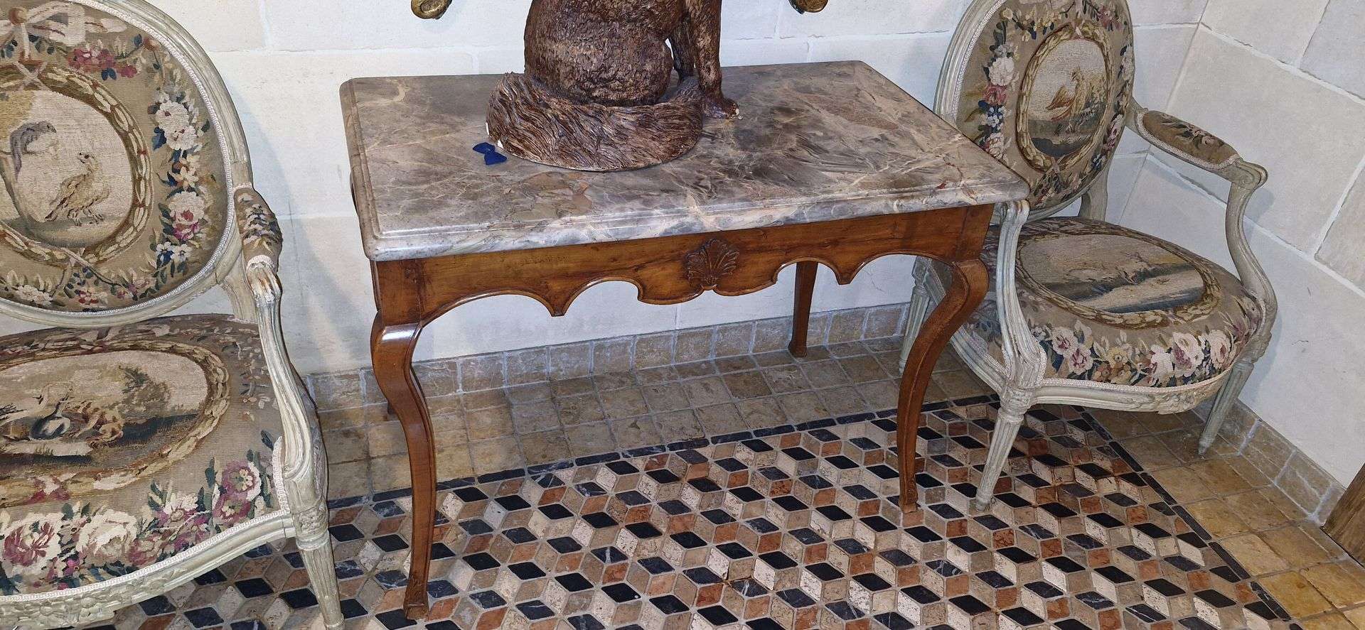 Table -console en noyer à piétement cambrés terminés en sabots.