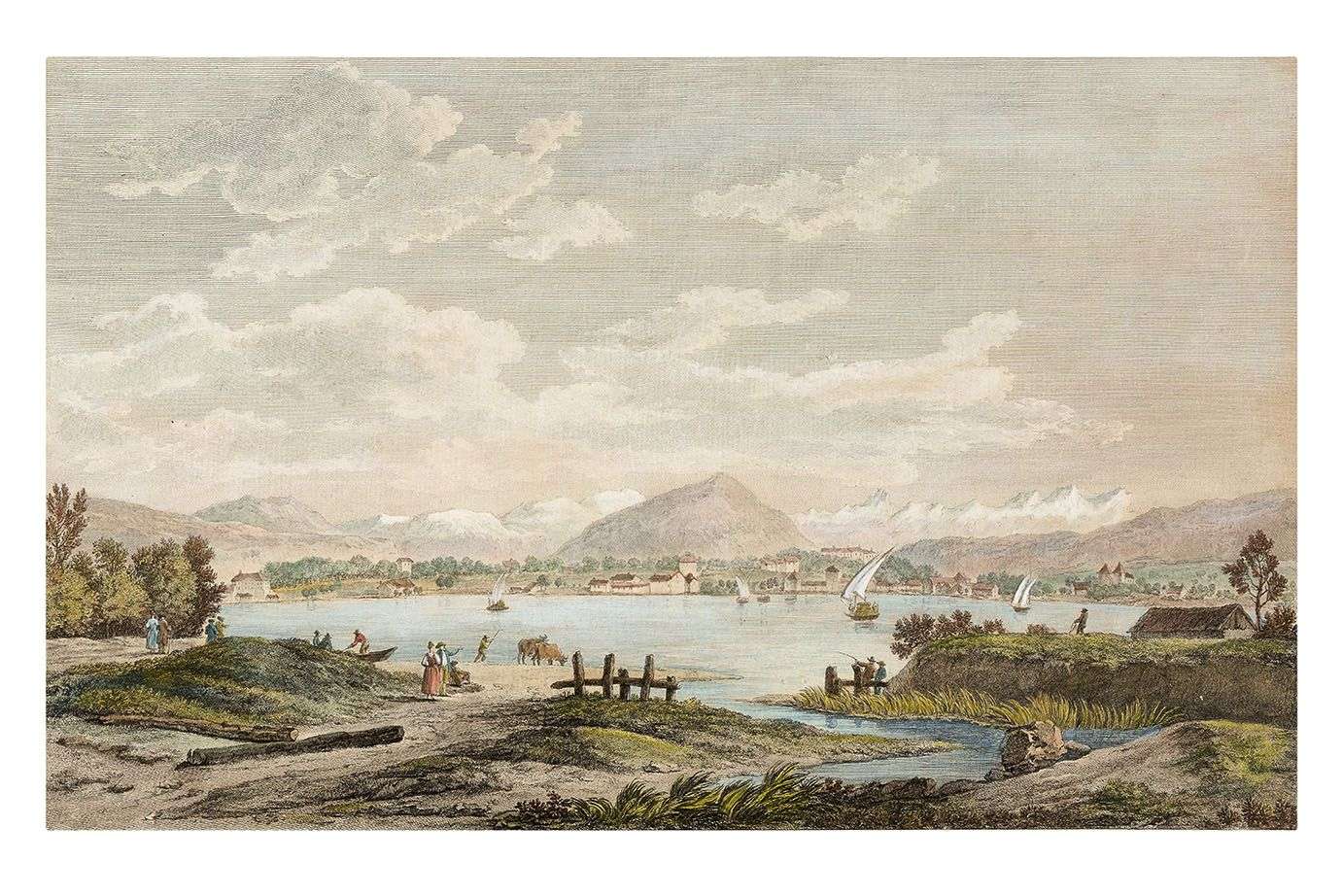 Vue d'une partie du lac de Genève et du fond des glaciers de Savoie, prise de Genève au Pâquia