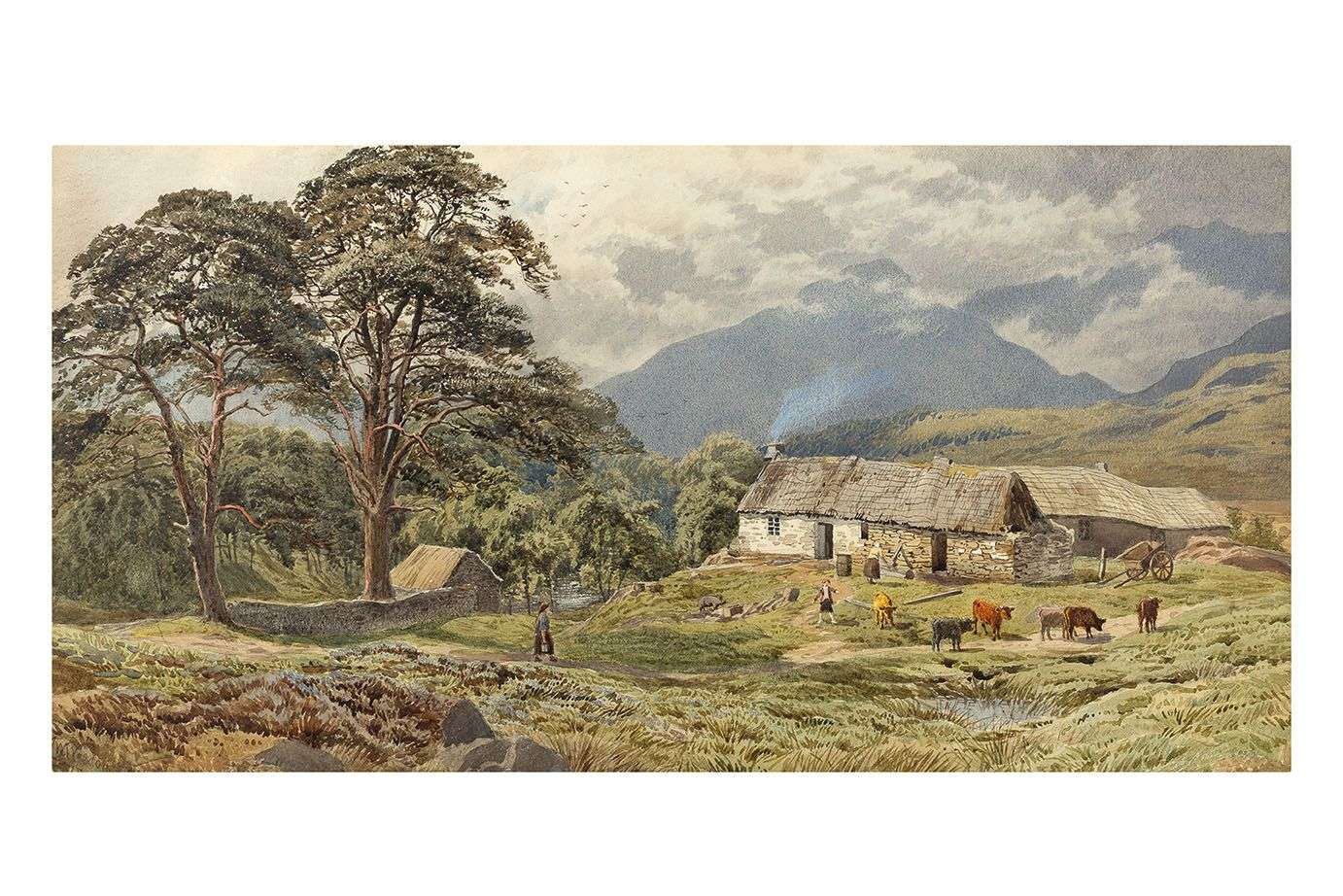 Chaumière, bergers et leur troupeau