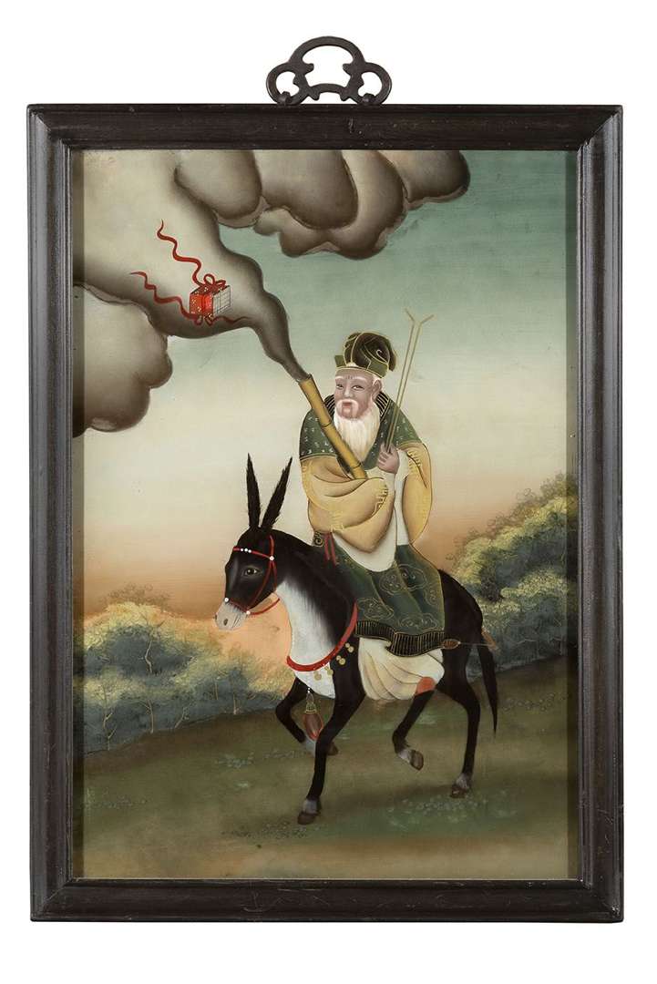 Suite de sept fixés sous verres représentant des immortels taoïstes.