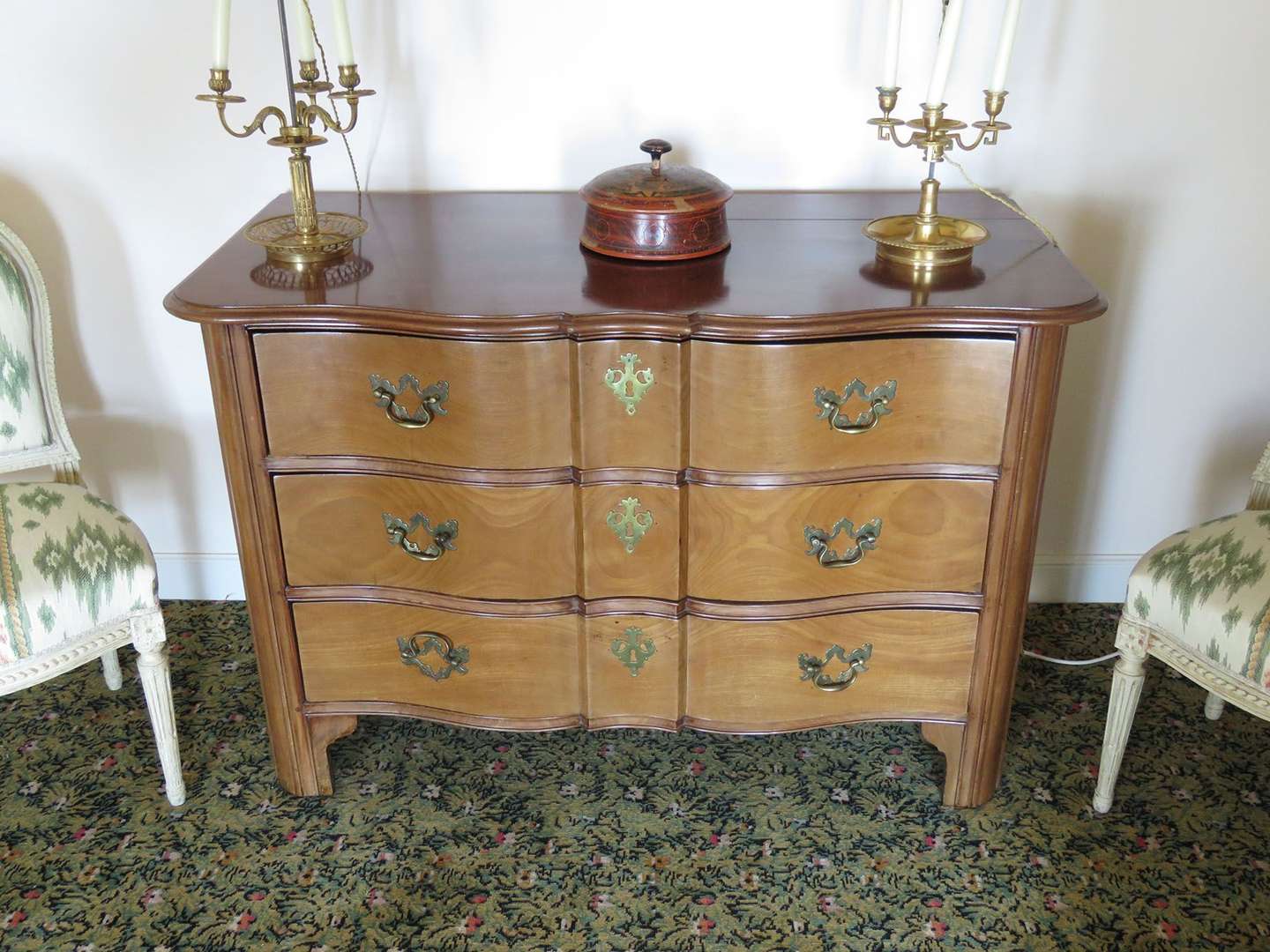 Commode en bois fruitier à façade en arbalète ouvrant par trois tiroirs.