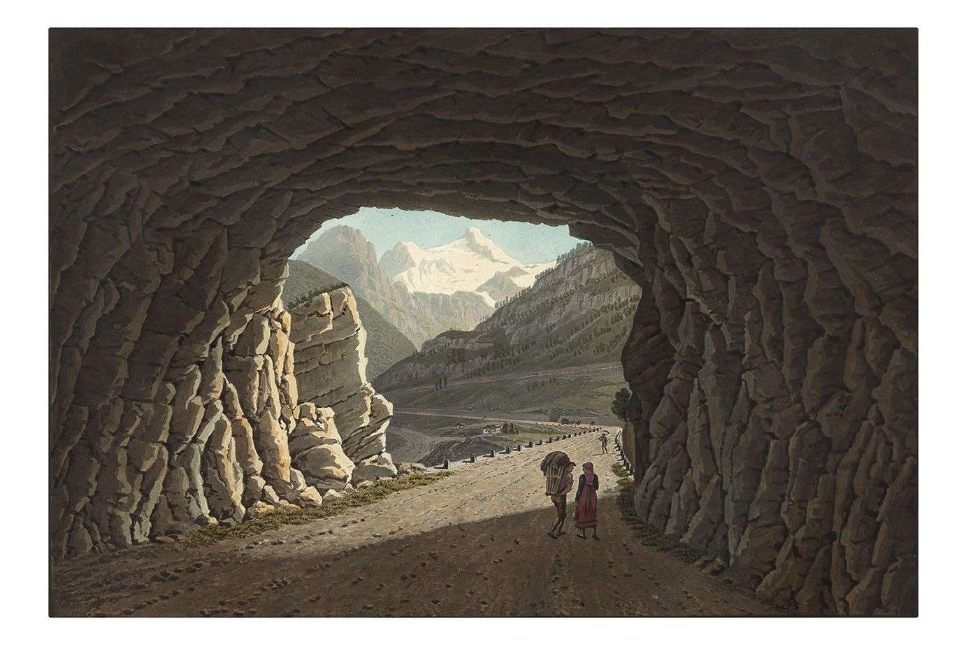 Vue prise de la sortie de la galerie de Schalbet du côté de l'Italie