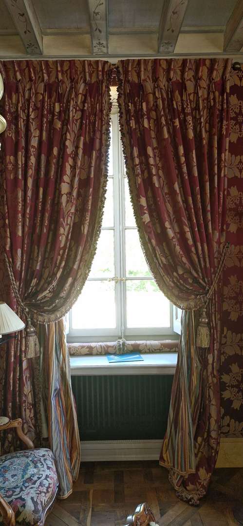 Très bel ensemble de sept paires de rideaux et passementerie,