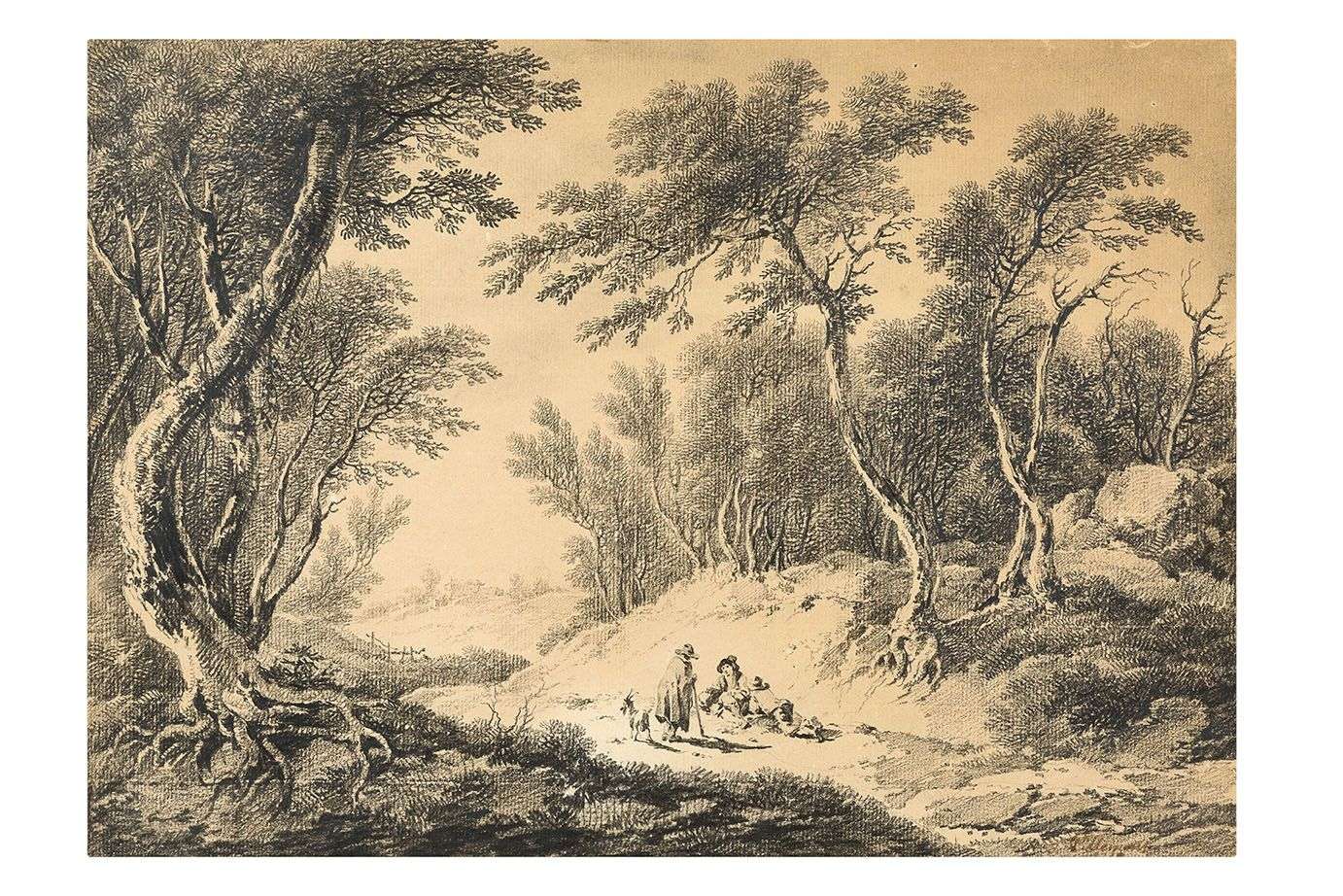 Paysage avec arbres et paysans