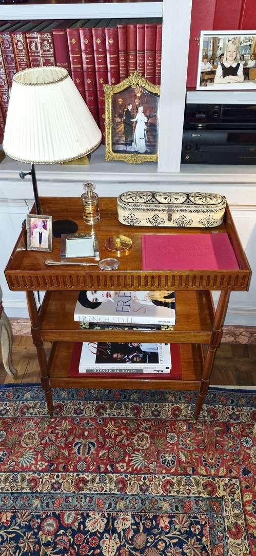 Table de présentation en acajou de forme rectangulaire à deux plateaux d'e