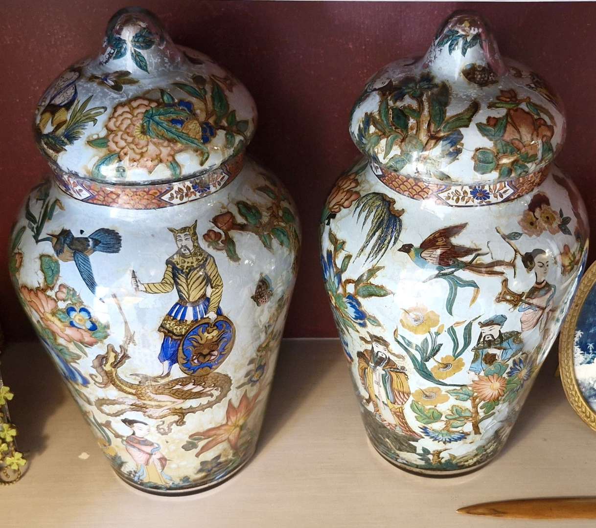 Paire de vases à décor en fixé sous verre de chinoiseries