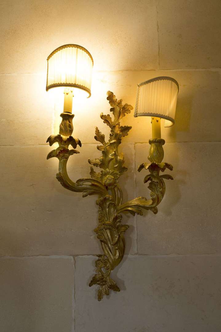 Paire d'appliques en bois sculpté et peint de style Louis XV.