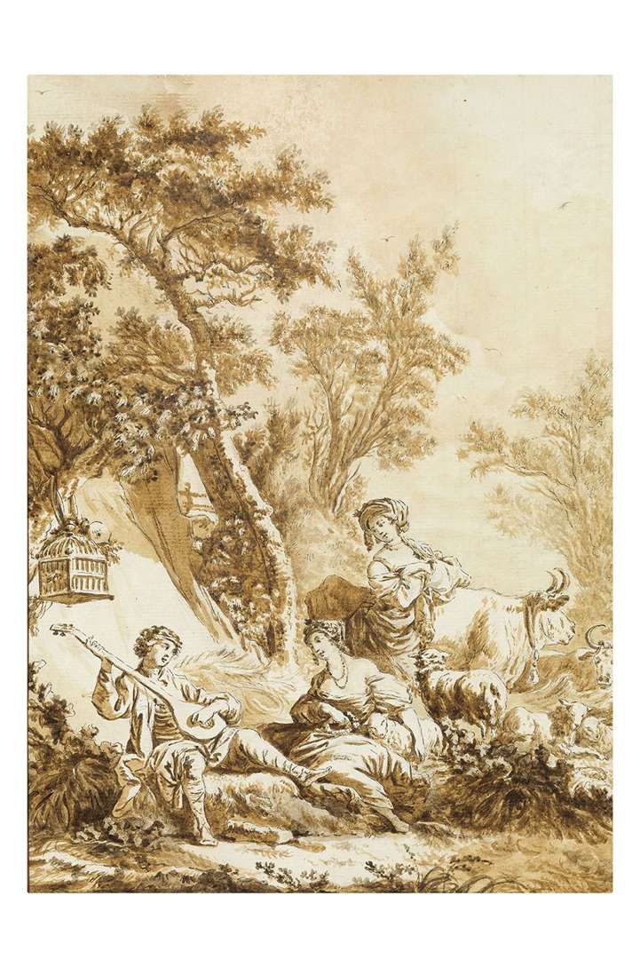 Pâtres musiciens et leur troupeau au repos