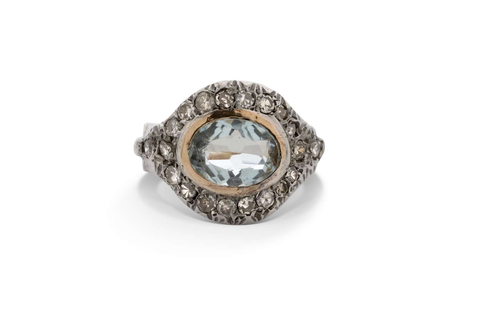 Aigue-marine ovale, diamants taille ancienne et taille huit-huit