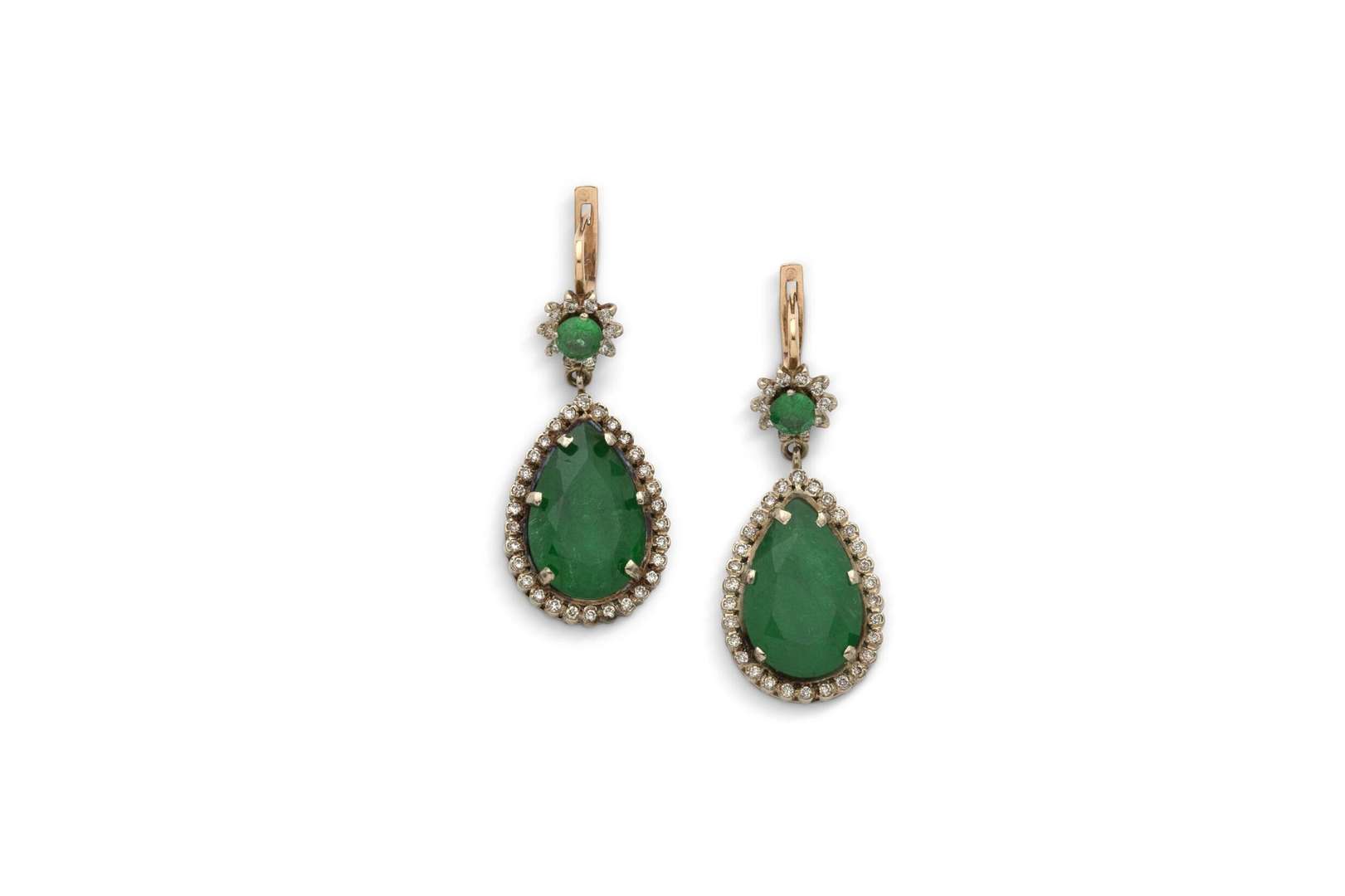 Emeraudes poires et rondes, diamants ronds taille brillant
