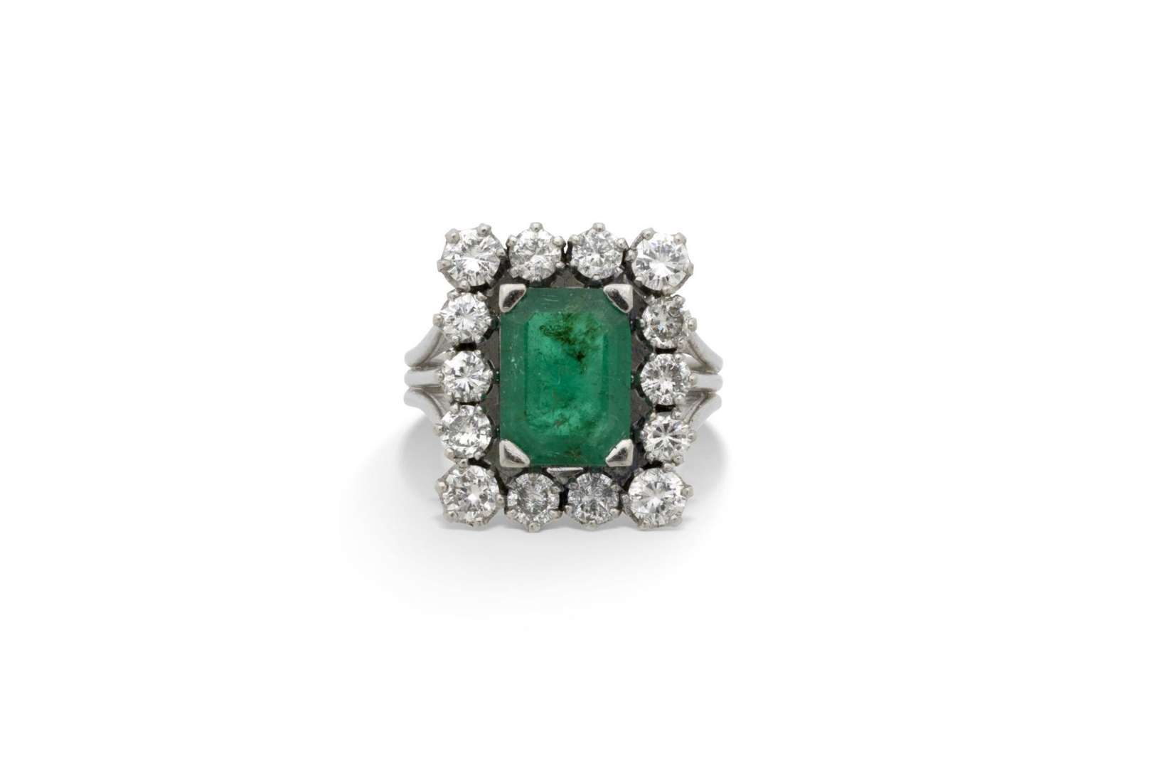 Emeraude rectangulaire à pans coupés et diamants taille brillant