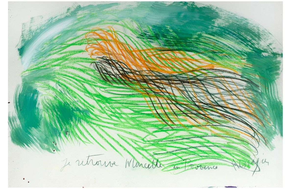 Pastel gras et gouache sur papier, titrée en bas au centre, signée en bas à droite