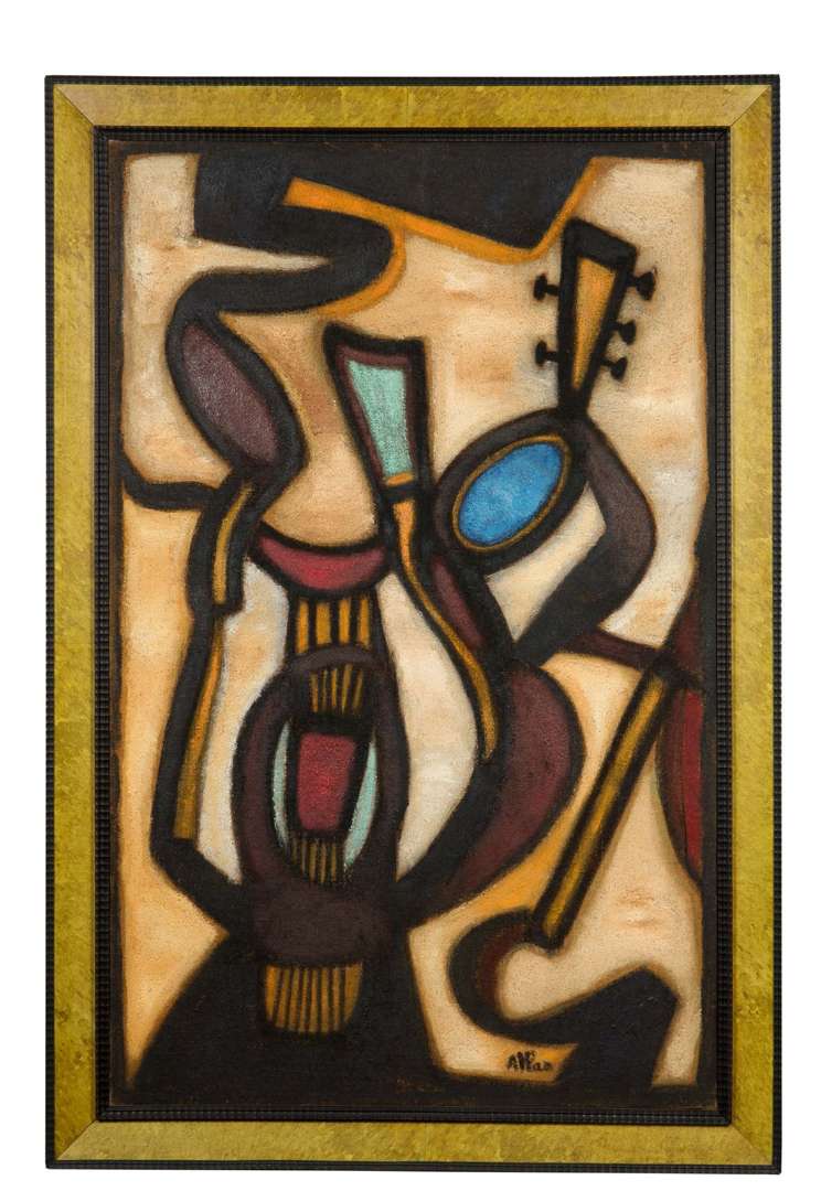 Il explore en effet, dès les années 1940, la question du rythme et de la ligne, de l’équilibre entre le tracé et la couleur, dont se dégage la notion de mouvement. Harlem est à ce titre un très bel exemple de l’exploration sans cesse renouvelée de cette obsession chère au peintre, et qui atteint sa pleine maturité à partir du milieu des années 1950. Cette toile appartient à ses tableaux dits « musicaux ». On y perçoit ainsi des instruments, les lignes des cordes qui structurent la composition et qui montrent à quel point l’artiste trouve sa voie dans une abstraction qui ne renie pas une