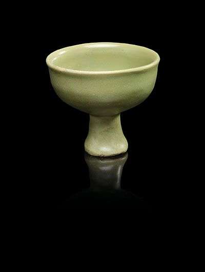 Coupe sur pied en grès porcelaineux à couverte céladon.