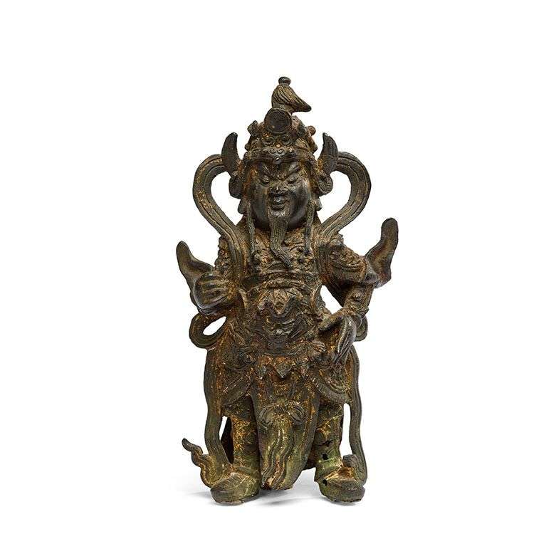 Statue de guerrier en bronze laqué doré, possiblement un des Rois-Gardiens.